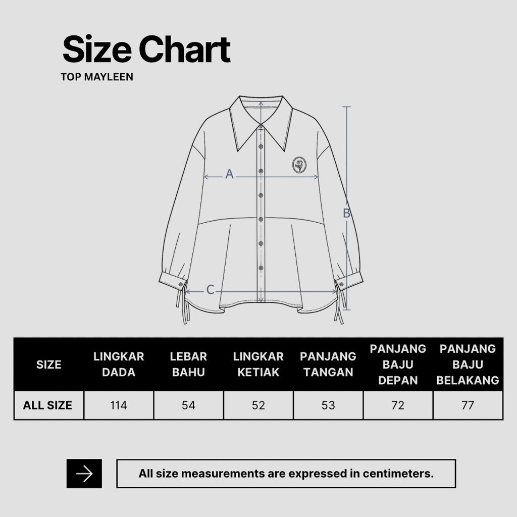 - Ada kemungkinan terdapat perbedaan size guide dengan ukuran real antara 1-2 cm.