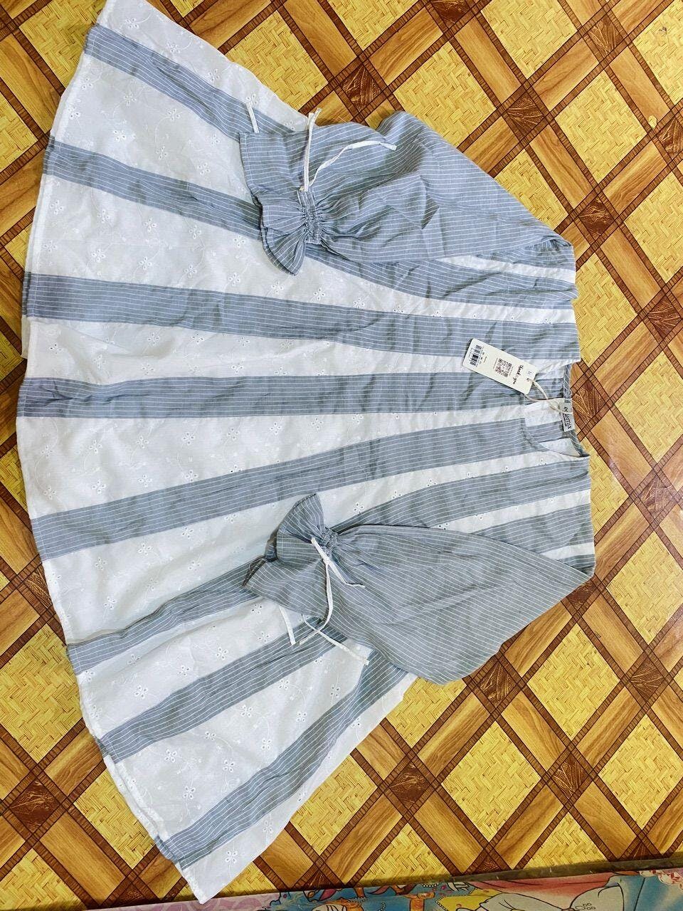 Hadir dengan paduan dua jenis kain yaitu cotton stripe dan cotton embroidery, memberikan kesan unik, elegan, dan memberikan ilusi yang lebih jenjang. Cuttingan loose fit membuatnya nyaman dan cocok untuk berbagai bentuk tubuh. Sementara aksen pita pada pergelangan tangan menambah sentuhan feminin yang manis.