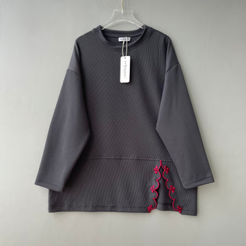 Eclemix Top Orari | Atasan Wanita Lengan Panjang Oversize Bordir Floral Casual Chic