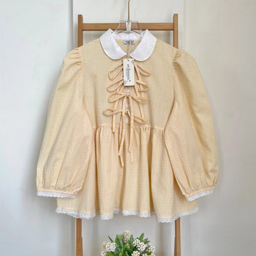 Blouse korean style dengan aksen tali di bagian depan yang adjustable dan feminim. Memiliki cuttingan loose yang flowy dan lengan puff yang cantik. Terdapat aksen renda lengan dan bagian bawah untuk mempermanis tampilanmu. Varian warna pastel soft memudahkan blouse ini untuk di mix & match dengan skirt maupun pants.